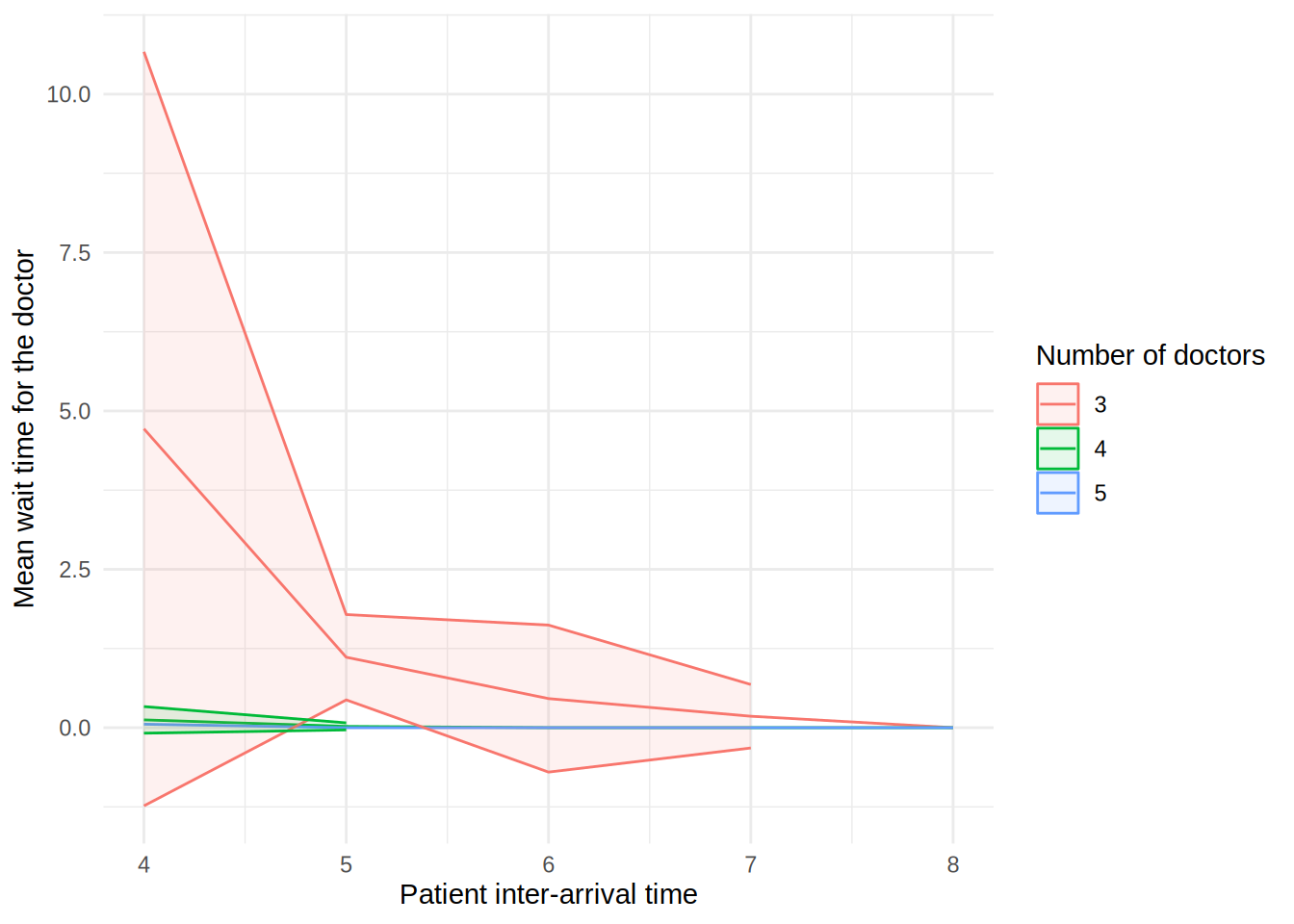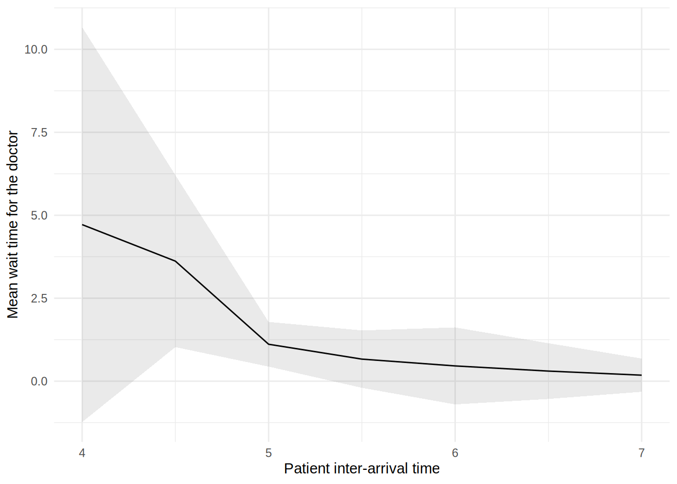 name_mappings <-list(interarrival_time ="Patient inter-arrival time",number_of_doctors ="Number of doctors",mean_wait_time_doctor ="Mean wait time for the doctor",utilisation_doctor ="Mean utilisation",mean_queue_length_doctor ="Mean queue length",mean_time_in_system ="Mean patient time in the system",mean_patients_in_system ="Mean number of patients in the system")