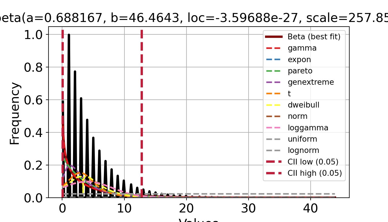 distribution parameters obtained from distfit, providing conventional
