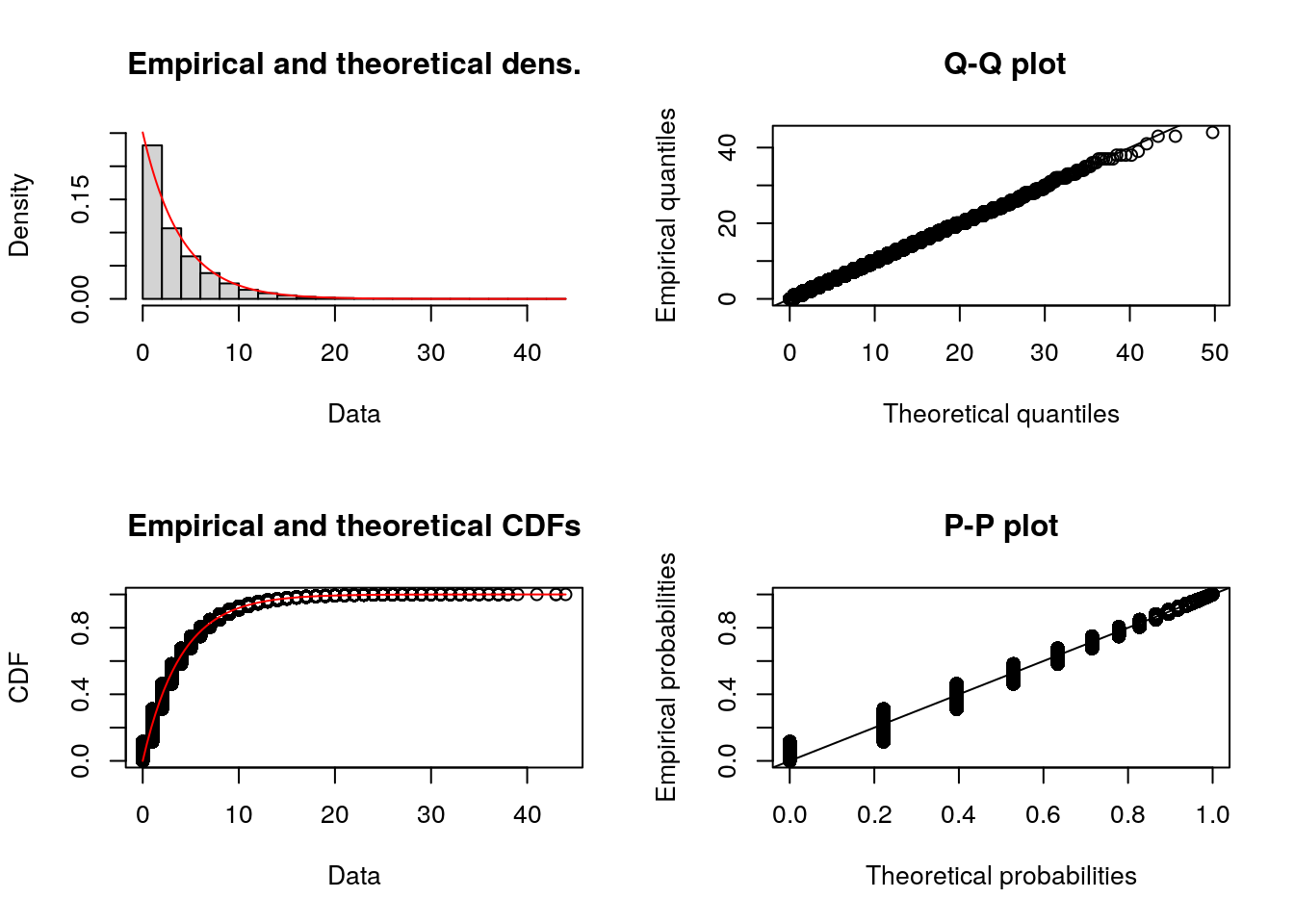 The fitdistrplus package also has some nice visualisation functions.