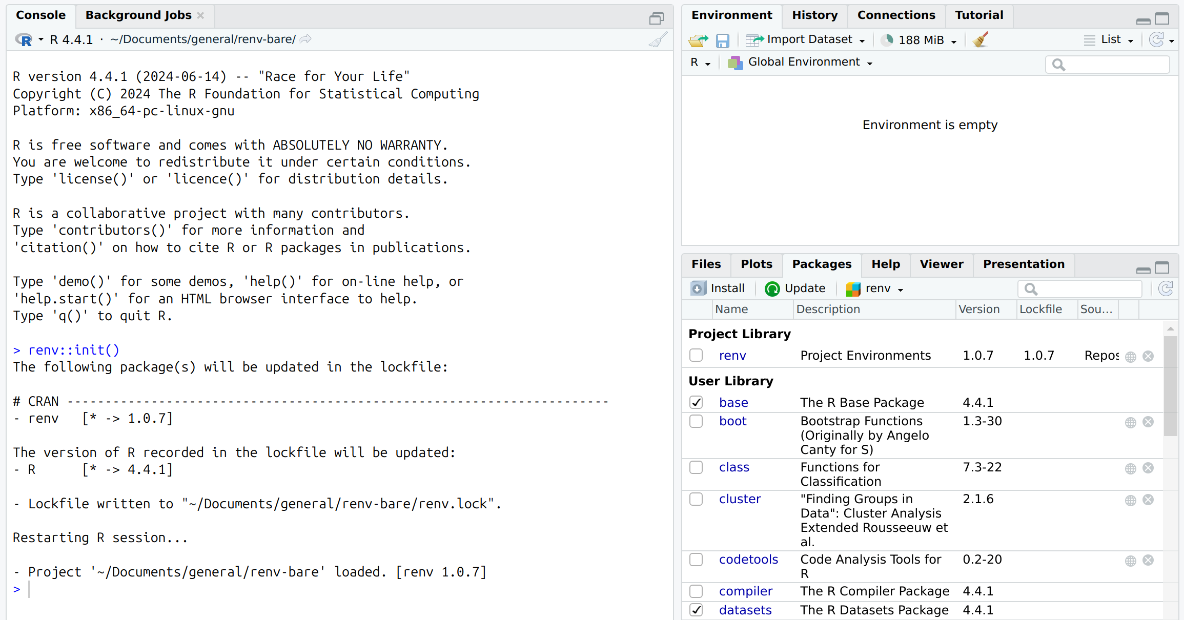 renvby runningrenv::init(). - Create a