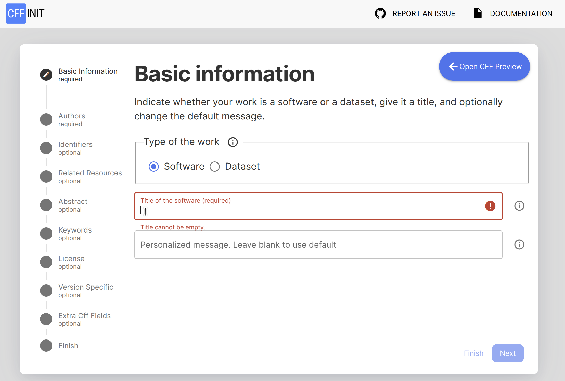 Try it out for yourself! Have a go at adding citation information to your codebase. For example, visit cffinit to create a CITATION.cff file and add it to your repository.