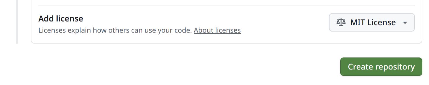 If you didn’t add it then though, it’s still very simply to add a license at any time. You just need to copy the license text from sites like https://choosealicense.com/licenses/ or https://opensource.org/licenses, paste it into a new file called LICENSE, and commit it to your project.